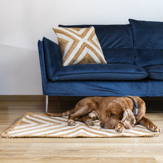 Tappeto Arredo Natural a Righe in Juta Intrecciata